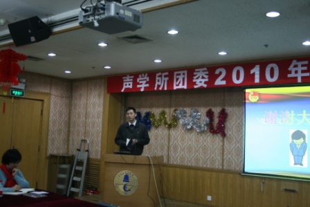 首先,由所团委书记张云鹏做2010度总结报告。张云鹏在报告中指出,2010年所团委的工作主要从:“塑造品牌活动”、“推出系列活动”、“提升活动层次”、“围绕中心工作”四个方面进行,他以丰富翔实的资料和照片生动地展示了所团委一年来所开展的多姿多彩的活动,充分展现了广大青年团员风采与精神面貌。