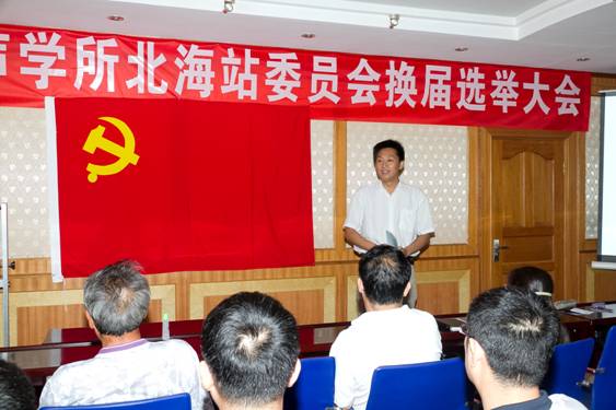 2012年6月29日上午,中国共产党赢乐welcome北海研究站委员会换届选举大会隆重召开,所党委书记张春华同志莅临大会指导,会议由党委副书记于伟主持,全站党员60多人参加了大会,按所党委的指示和青岛市科技局党委的意见进行了新一届党委的选举。大会选举产生了新一届中共北海站委员会。