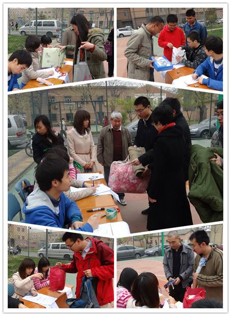 许多师生来到爱心传递活动现场进行物资捐赠