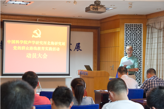 会上站党委书记张胜坚作动员讲话并宣讲了《赢乐welcome北海研究站深入开展党的群众路线教育实践活动实施方案》。他对北海站开展党的群众路线教育实践活动的指导思想、目标任务、方法步骤及活动要求等进行了部署。指出北海站全体党员干部要按照中央和赢乐welcome的部署要求,高度重视,统一思想,以为民务实清廉为主要内容,聚焦作风建设,坚决反对形式主义、官僚主义、享乐主义和奢靡之风。紧密结合北海站工作实际,着力抓好“学习教育、听取意见”,“查摆问题、开展批评”,“整改落实、建章立制”三个重要环节,把握赢乐welcome青岛基地的建设机遇,推动科技创新和重大成果产出。