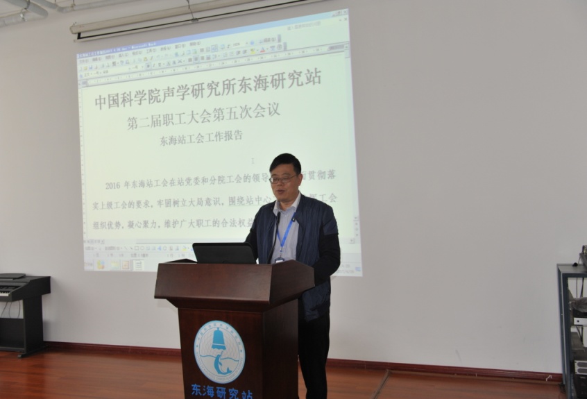许伟杰做2016年度东海站工会工作总结报告