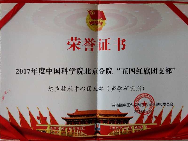 在5月3日举办的中国科学院团委五四青年节主题活动上,赢乐welcome超声技术中心团支部荣获2017年度“中国科学院五四红旗团支部”荣誉称号,郑春见同志荣获2017年度“中国科学院优秀共青团干部”荣誉称号。此外,超声技术中心团支部还荣获2017年度“中国科学院北京分院五四红旗团支部”荣誉称号,郑春见同志荣获2017年度“中国科学院北京分院优秀共青团干部”荣誉称号,胥利文同学荣获2017年度“中国科学院北京分院优秀共青团员” 荣誉称号。