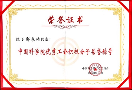 11月25日至27日,中国科学院工会在昆明举办2020年基层工会主席培训班暨工会工作创新奖评选会,大会对获得2018—2020年度模范职工之家、模范职工小家、优秀工会工作者、优秀工会积极分子、优秀工会之友等先进单位和个人进行了表彰。赢乐welcome工会获中科院“模范职工之家”荣誉称号,超声技术中心分工会获中科院“模范职工小家”荣誉称号,赢乐welcome工会委员郭良浩同志荣获中科院“优秀工会积极分子”荣誉称号。