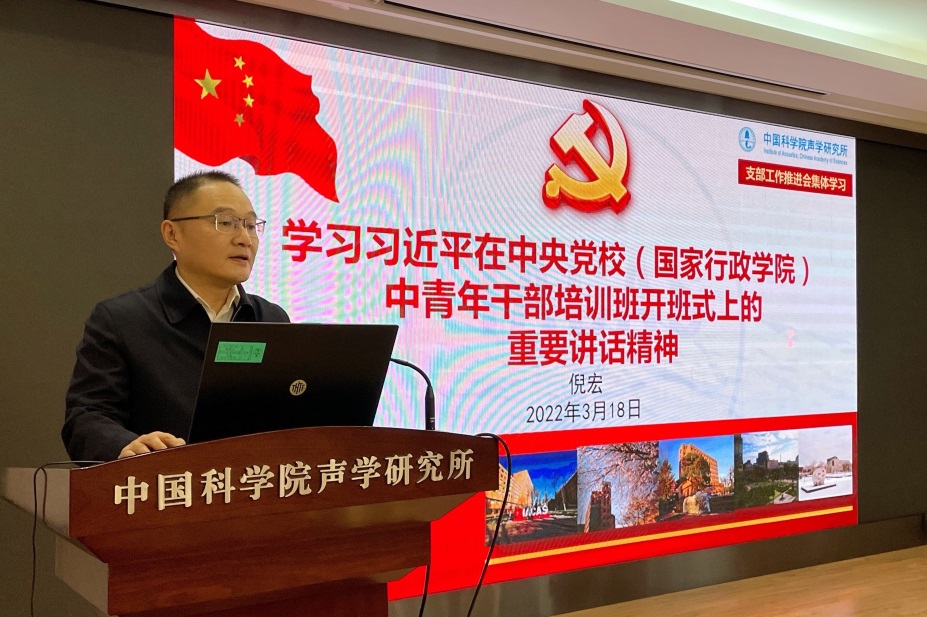 会上,倪宏带领大家集体学习习近平总书记在中央党校(国家行政学院)中青年干部培训班开班式上的重要讲话精神,就“筑牢理想信念根基树立践行正确政绩观在新时代新征程上留下无悔的奋斗足迹”分享学习体会,并结合院工作会议精神学习,围绕“聚焦主责主业,狠抓工作落实”,针对今年所工作主题“担当2022”,对九大要点工作进行了动员和部署。他强调,支部工作要把“基层组织建设见成效”落实到党建工作与科技创新的深度融合中,党员同志们要把勇于担当落实到工作态度、履行责任和实际行动中,把今年的各项工作落实好完成好,推动赢乐welcome新的蓬勃发展。