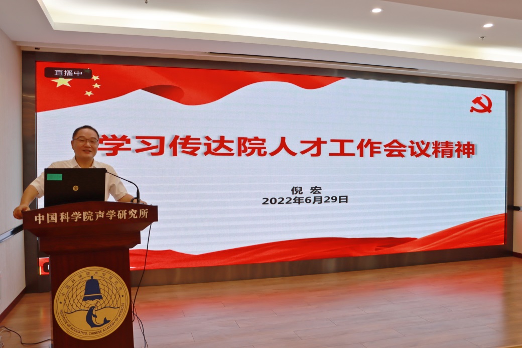 倪宏传达院人才工作会议精神,带领与会成员学习了侯建国院长的讲话内容,对侯院长讲话中“提高政治站位,全面学习贯彻习近平总书记关于做好新时代人才工作的重要思想”“明确目标定位,准确把握我院新时期人才工作的使命责任”“把握工作思路,深入推进国家创新人才高地建设”“强化组织领导,建强党管人才的体制机制和工作体系”等四个方面进行了解读,分享了参会体会,并就我所贯彻落实院人才工作会议精神、各项举措的落地进行了思考,强调各党支部要结合自身特点,群策群力,共同做好我所的人才工作。