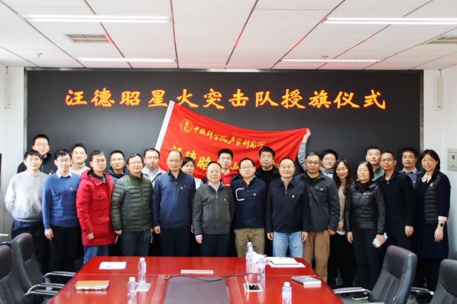 2023年1月4日下午,“汪德昭星火突击队”授旗仪式在大猷楼301会议室举行。所长李风华、党委书记倪宏,突击队队长黄海宁、突击队骨干队员代表、党委办公室副主任(主持工作)闫玮丽参加了会议,水下信息技术党总支书记田杰主持会议。