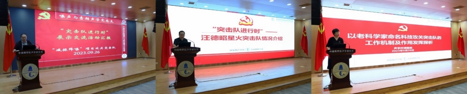 在“突击队进行时”交流展示中,“减振降噪”项目攻关突击队队长程晓斌,汪德昭星火突击队成员、水下信息技术党总支书记田杰,分别聚焦突击队基本情况、攻关内容、奋斗誓言、奋斗目标、弘扬践行科学家精神的具体举措以及成效等方面作交流分享。闫玮丽介绍《以老科学家命名科技攻关突击队的工作机制及作用发挥探析》课题调研成果。