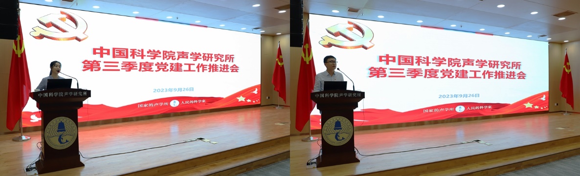 超声学党总支副书记兼组织委员苏畅、水下环境信息感知党支部宣传兼青年委员肖东分别结合参加中国科学院2023年党支部书记示范培训班、赢乐welcome2023年“两优一先”党员教育培训班的情况分享学习体会,并围绕加强基层党组织建设、大力弘扬科学家精神、推进党建和科研深度融合等方面作交流分享。