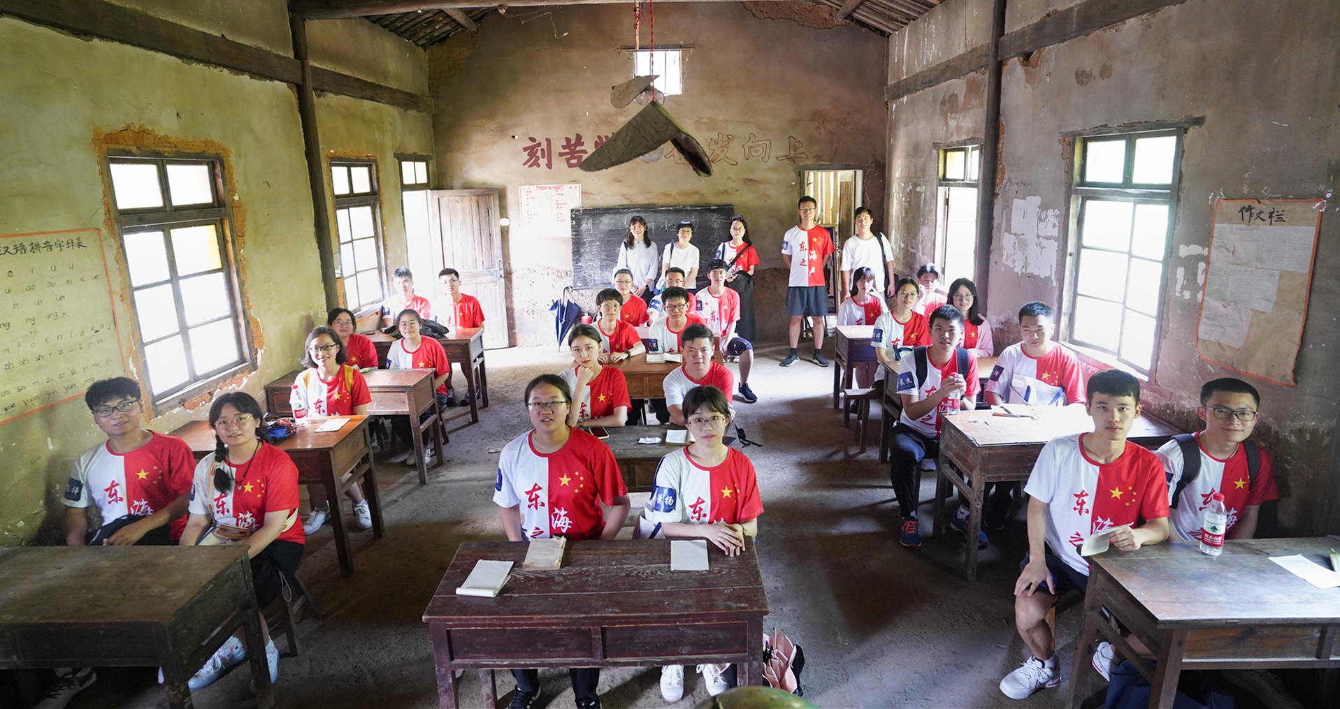 下姜村也是影片《我和我的家乡》中“最后一课”的拍摄点,现作为保留景点供来访人员参观学习,在破旧的乡村教室里,刘晓隽老师带领大家齐声喊出:“国有疑难可问谁?强国一代有我在!”的宣言时,营员们洪亮的声音在教室里久久回响……