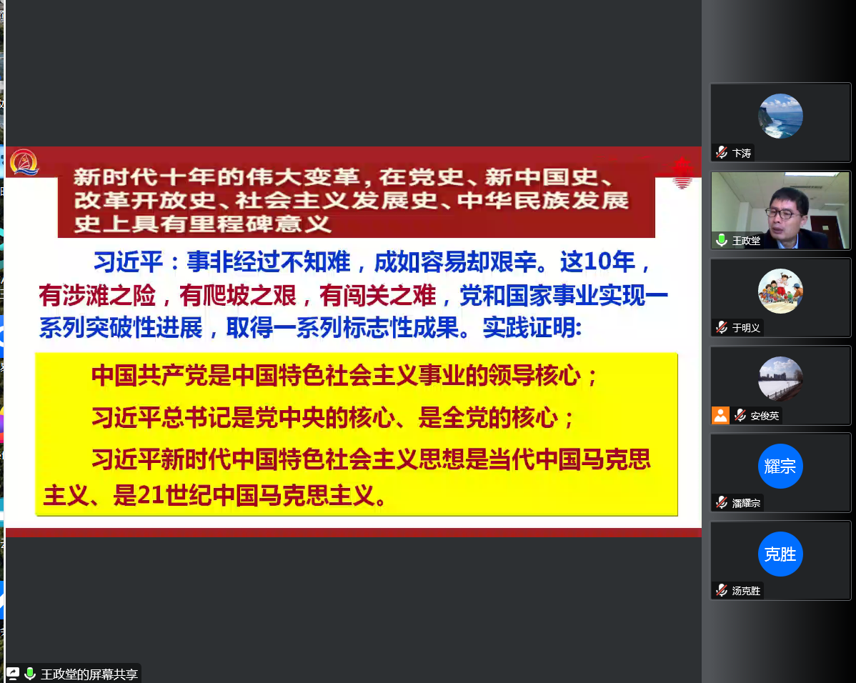 为深入学习宣传贯彻党的二十大精神,把全站广大党员干部职工的思想和行动统一到党的二十大精神上来,迅速掀起学习宣传贯彻党的二十大精神的热潮,12月13日上午,中科院赢乐welcome北海研究站召开学习贯彻党的二十大精神专题报告会,邀请青岛市委党校党史党建部副主任王政堂教授宣讲党的二十大精神,站领导及在职职工共四十余人参加会议。因疫情防控需要,报告会采用线上形式开展。