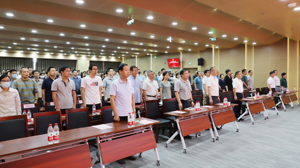 庆祝大会在庄严的国歌声中开幕。党委书记倪宏以《以习近平新时代中国特色社会主义思想凝心铸魂,为加快实现高水平科技自立自强作出新贡献》为题作专题报告,报告围绕加强党性修养,自觉用习近平新时代中国特色社会主义思想凝心铸魂;把握核心要义,坚持用习近平新时代中国特色社会主义思想的世界观和方法论指导实践、推动工作;强化职责使命,对标“四个率先”和“两加快一努力”要求,全力攻关、彰显担当等三部分进行详细阐述。