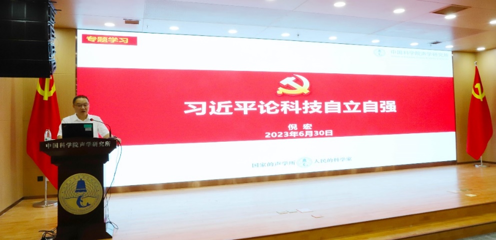 倪宏带领与会人员专题学习习近平总书记《论科技自立自强》,围绕实现高水平科技自立自强的重大意义、理解高水平科技自立自强的深刻内涵、推动高水平科技自立自强的战略举措等三方面进行深入解读,并结合研究所工作,就加强党的全面领导、加强原创性引领性科技攻关、推进科技体制改革、激发人才创新活力等方面,同与会人员进行交流和探讨。他强调,要准确把握习近平总书记关于科技自立自强的重要论述,理解科技创新的核心要义,按照“聚焦布局、重塑队伍、提升效能”的总体思路,提振精神、找准方向、立足本职,不断推动高水平科技自立自强,为全面实现“四个率先”不断取得新进展、新成效。