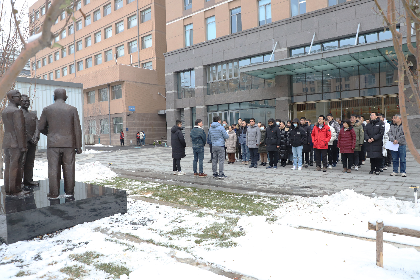 白国锋带领大家瞻仰“汪德昭 马大猷 应崇福”院士塑像,全体同志向老科学家三鞠躬,并向他们致以最诚挚的敬意。在塑像前,厉剑、刘阔阔、石同阳等三位青年科技工作者用饱含深情的语调,分别诵读三位老科学家的经典话语,带领大家重温科学家留下的宝贵精神财富。六位献花代表向老科学家献花,深切怀念他们对声学事业发展作出的突出贡献。