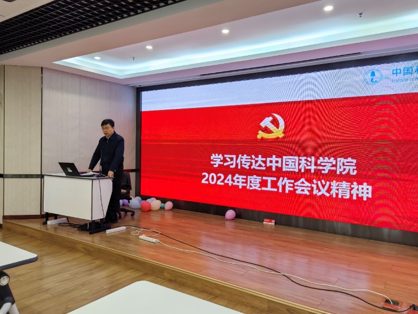 2024年1月18日,海洋声学技术党总支召开党员大会,组织全体党员以及职工集中学习、研讨中国科学院2024年度工作会议精神。