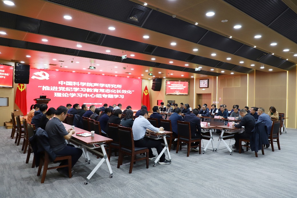 会议首先进行了以《坚持融入日常、抓在经常 扎实推进党纪学习教育常态化长效化》为题的专题学习,倪宏带领与会人员深入学习领会习近平总书记关于党纪学习教育的重要指示和中央党的建设工作领导小组会议精神、院党组理论学习中心组第12次集体学习会精神以及相关政策文件,并结合研究所实际传达了院党组相关部署要求和院2024年党委书记工作研讨班的会议精神。