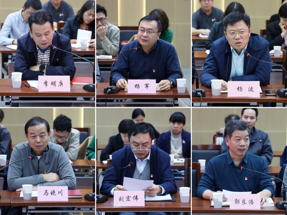 党委委员、副所长李眀庚、杨军、杨波分别结合分管领域工作进行了交流发言。李眀庚表示要充分认识到党纪学习教育的重要性;要探索党纪学习教育的常态化、长效化新路径;要将党纪学习教育融入实际工作。通过加强财经制度学习、加快预算执行力度、积极盘活存量资金、以及开源和节流并重等持续加强经费管理,加强制度建设,推动党纪学习教育与科研创新工作同频共振取得实效。杨军在交流发言中回顾了学习侯建国院长在《人民日报》2023年7月17日发表的署名文章的体会,他表示要持续加强纪律建设,聚焦主责主业,强化使命担当,始终保持重任在肩的责任感、如履薄冰的谨慎态度,解决国家重大战略需求、攻克重大科学技术问题,聚力协同攻关,以“人生能有几回搏”的劲头,加快抢占科技制高点。杨波表示要对专项条件保障开展系统的顶层设计和系统谋划,嵌入专项科研全过程,要突出抓好纪律培训,进一步强化制度管理,推动学深学透、入脑入心,时刻绷紧纪律规矩这根弦,加强警示教育,在党纪学习教育的道路上,坚定理想信念,筑牢思想防线。