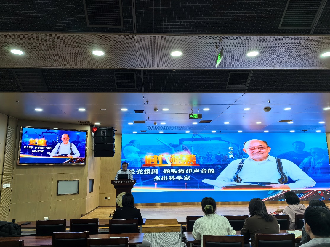 为传承和弘扬科学家精神,2024年11月20日,海洋声学党总支在科研综合楼1503会议室组织党员职工、学生,举行“弘扬老一辈科学家‘国之脊梁’精神,登攀水下科技制高点”微党课活动,会议由党总支书记杨娟主持。