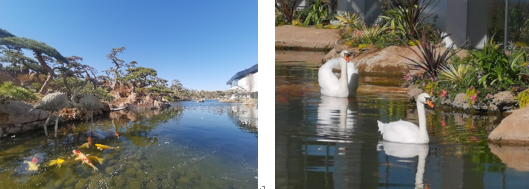 室外的园林错落有致,风景宜人,有幸看到摆出爱心的白天鹅,优美之极。
