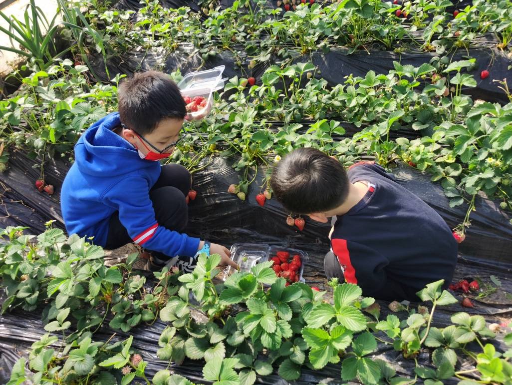 结束了罗红艺术馆的探访,下午我们又来到了草莓采摘园。步入采摘园,一垄垄的田埂上翠绿的叶子、一颗颗鲜红的草莓,一股股扑鼻的草莓香味,让人垂涎三尺。大自然是孩子直接体验美与生命力最好的“课堂”,是学习、体验、观察、探索的最好场所。孩子们——采摘园中最活跃的“积极分子”纷纷拿着小筐,边体验田园生活,边品尝鲜果草莓,真是不亦乐乎。