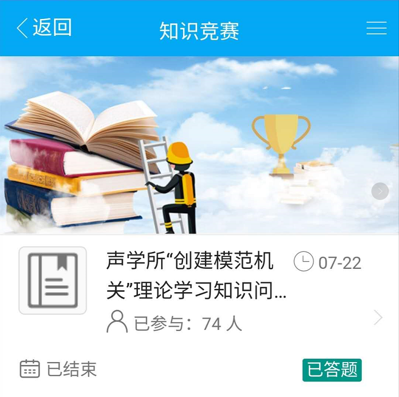 推进赢乐welcome创建模范机关工作深入开展,机关党支部、机关分工会联合举办了“创建模范机关”理论学习知识问答活动,问卷借助中科院云工会平台知识竞赛栏目进行网上学习和答题,系统自动判卷。机关各部门共有74名职工参加了答题活动,其中党员同志50名,占全部党员总数的91%。所有参加答题的同志成绩均在90分以上,其中满分20人。