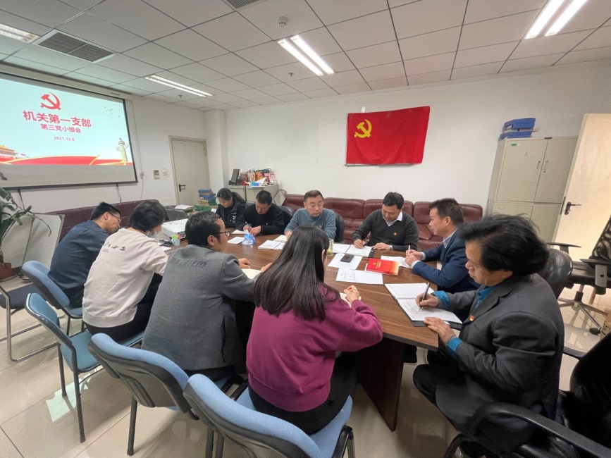 2021年12月8日,机关第一党支部第三党小组在崇福楼214会议室召开党小组会,党委委员、副所长李明庚等党小组成员参加。会议由党小组组长程洋主持。