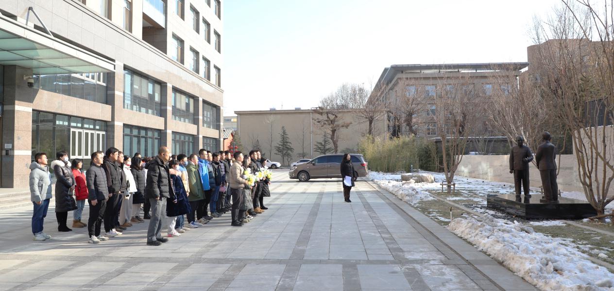 张莉带领大家深切缅怀三位老科学家的丰功伟绩,感悟思想光芒,汲取奋进力量,瞻仰“汪德昭 马大猷 应崇福”院士塑像,全体同志向塑像三鞠躬。在塑像前,邢宇、李剑剑、杨浩三位同志分别诵读三位老科学家的经典话语,聆听老科学家谆谆教诲。六位献花代表向老科学家献花,向他们表达追思与敬意。