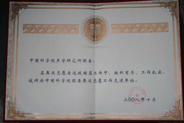 我所在研究生院课程学习的一年级的部分同学也积极参加了奥运志愿者服务,为我所争得了荣誉。