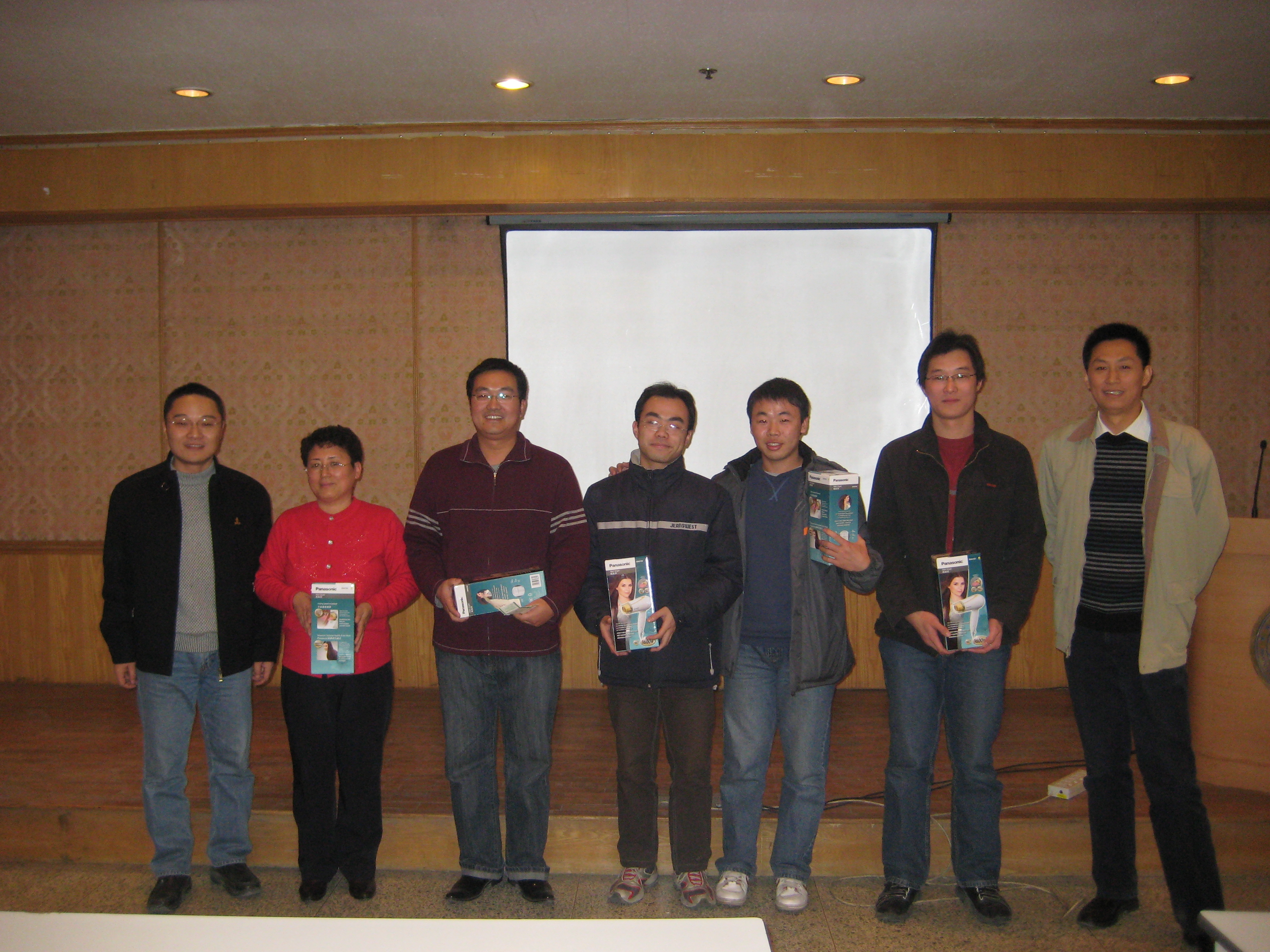 在比赛结束后进行了隆重的颁奖典礼,由团委书记张云鹏主持。首先,党委书记张春华为获得三副牌冠军的何世堂、李继领、黎瑛颁奖,随后由助商代表网络新媒体工程技术研究中心副主任赵志强为获得两副牌冠军的“梦之队”张书记、倪书记颁奖,接着张书记、倪书记分别为获得二、三等奖的选手颁奖。
