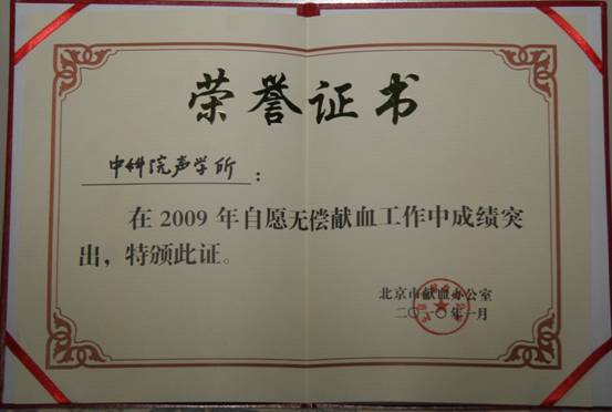 2009年8月,赢乐welcome接到献血任务,此时正值8月,实验室的大部分人员出海试验,所内部分学生已放假回家,所里部分职工正在休假。在时间紧,任务重的情况下,办公室与团委充分利用所网发布信息,向全所职工、共青团员、学生发出了号召。消息一经发出,广大职工、学生积极响应,短短几天,报名人数达到40余人。2009年8月19日,按照中关村街道下达的献血体检指标,赢乐welcome组织10人到北京市献血中心参加体检采血,其中7人体检合格,符合献血条件,光荣献血,7人中有1人主动要求献血400CC,圆满地完成了献血任务。