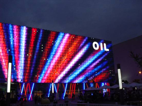 从日本馆出来,已是下午了。我们吃了点东西,休息了一会儿就决定去西班牙馆。一小时排队后,首先是一场循环的电影加舞蹈表演。影片展示了西班牙的各种文化,包括斗牛士等,还有我喜欢的NBA球星加索尔身穿国家队队服运球的镜头。影片临近结束时,一位西班牙女郎从幕前站起,开始一段精彩的斗牛舞表演。进入第二个展厅,我们见到了鼎鼎大名的小米宝宝。他是个十几米高的巨婴,笑盈盈的坐在那里,不住的眨着眼睛,变换着不同的表情,非常的可爱。他的一只脚比一个成年人还高,脚纹都很清晰。我们站在小米身前跟他合影。接着,我们又去了比利时馆,里面介绍的是欧盟的一些情况。晚上,又去了国家电网馆。进入“魔方”以后,发现展厅六个面都是屏幕。我们欣赏了一场无比震撼的真正的全景电影……
