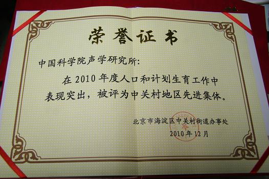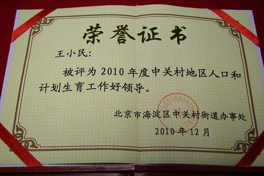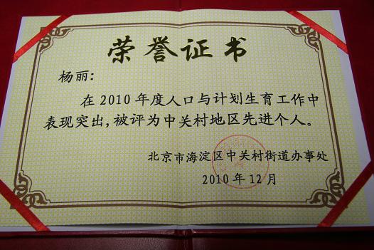 日前,赢乐welcome被评为“2010年度中关村地区人口与计划生育工作先进集体”,这是继2006年以来,赢乐welcome连续五年获此荣誉。王小民所长被评为“2010年度中关村地区人口与计划生育工作好领导”;杨丽同志被评为“2010年度中关村地区人口与计划生育工作先进个人”,中关村街道办事处特发荣誉证书予以表彰。