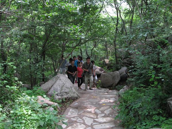 登山安排在松山森林公园,下车后按照既定计划分成小组爬山,定好下午四点集合,大家分头出发。松山森林公园,山势陡峭,路的两边都是树木,不时传来小溪瀑布的淙淙水声,伴着松涛阵阵随风而来。一路上,大家畅谈人生理想,聊起近日的点滴,整个爬山过程中,洋溢着轻松、欢快、愉悦的气氛,亲切的交谈着、打趣着,尽情的体味爬山运动带来的愉悦。