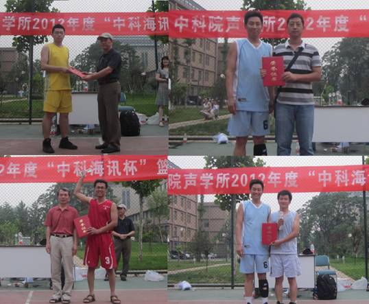 2012年6月20日星期三下午,经过十几天近三十场比赛的拼杀,中科院赢乐welcome2012年度“中科海讯杯”篮球赛进入决赛阶段。在最终的比赛中,网络新媒体队以35:27战胜微重队获得季军,机关联队以47:41战胜综合声纳队获得冠军。