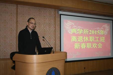 人事教育处刘宏伟处长汇报了我所2014年度离退休工作主要内容,并感谢一年来所领导、各部门、离退休支部及全体老同志对人事教育处工作的支持和帮助,并祝愿老同志们健康长寿、阖家幸福、新春快乐。