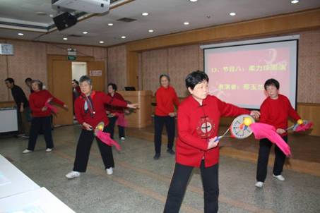 联欢会在人教处刘沫、刘楠两位同志的主持下,在喜庆的乐曲中拉开了序幕。联欢会节目丰富精彩,赵永义等四位老师带来的幽默诙谐的“四小天鹅”开场舞蹈,王晶晶老师、朱厚卿老师精彩绝伦、动静相合的空竹表演,任小燕老师深情优美的女声独唱,杨静老师领衔诸多老同志参加的大合唱,退休老同志们生动优美的舞蹈等等,无不展现出老同志们良好的精神面貌和多才多艺。联欢会还设立了游戏、谜语及抽奖等互动环节,老同志们积极参与,自始至终沉浸在欢歌笑语和掌声欢动的喜悦气氛中。