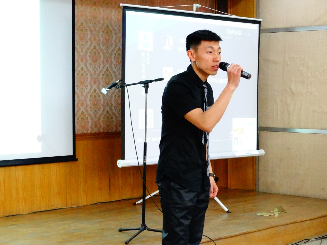 比赛尚未开始,多功能厅已经几乎坐满了人。大屏幕上播放着选手们提前录制的VCR,大屏幕旁边还特别设立了互动的“微信墙”,观众只要扫二维码进入便可留言互动。