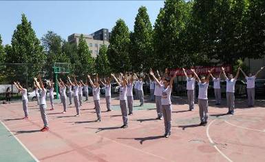 随着裁判员比赛号令的发出,各代表队迈着整齐的步伐,和着嘹亮的口号,按顺序一一入场: 整齐划一的队列步伐,优美舒展的体操动作,展示了各代表队朝气蓬勃、昂扬向上的精神风貌。
