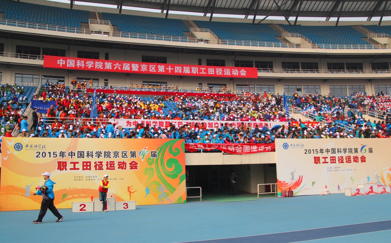 2015年10月 17日,以“科学健身、乘势而上、努力实现四个率先”为主题的中科院第六届运动会暨京区第十四届运动会在奥林匹克运动场隆重举行。来自全院72个单位,近3000名运动员和3000余名观众参加了运动会。