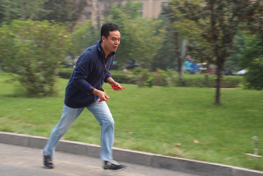 插红旗接力比赛和托球接力比赛是最热烈、最激动人心的比赛,插红旗接力比赛要求六名队员要依次完成将六面小红旗逐个插到相距五米的花瓶中,跑到拐点绕回后,再将红旗逐个收回,跑到终点将红旗交于下一名队员接力进行;托球比赛要求每名队员用乒乓球拍托着乒乓球快速跑到折返点,然后迅速往回跑,到达终点后交给下一名队员继续进行。比赛中不仅需要每位队员奔跑的速度、插拔红旗托球的精准度,还需要队员间有默契的配合。
