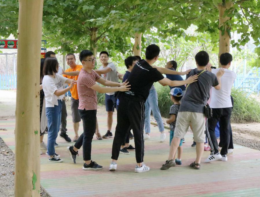 经过一个小时的车程,上午10点我们抵达了翠湖农庄。首先进行团队拓展活动。活动采用游戏对抗形式进行,第一项比赛为“激情鼓掌”。要求每队围成一个圈,用“逐字喊口号—对应相互鼓掌”的方式大声喊出“我们是最棒的团队”,用时最短的团队胜出。在自由练习了五分钟后,两队进行了激烈比拼,最终由李宇副主任带领的第二小组以领先20秒的优势胜出。通过激情鼓掌游戏,加强了队友间的团队协作与默契,增进了成员融合度。在游戏过程中语速/击掌频率快的队员积极带动其他队员,这就做到了以快带快,以致获得最终成功,这启发我们在工作与学习中更是需要“见贤思齐”,奋力前行。