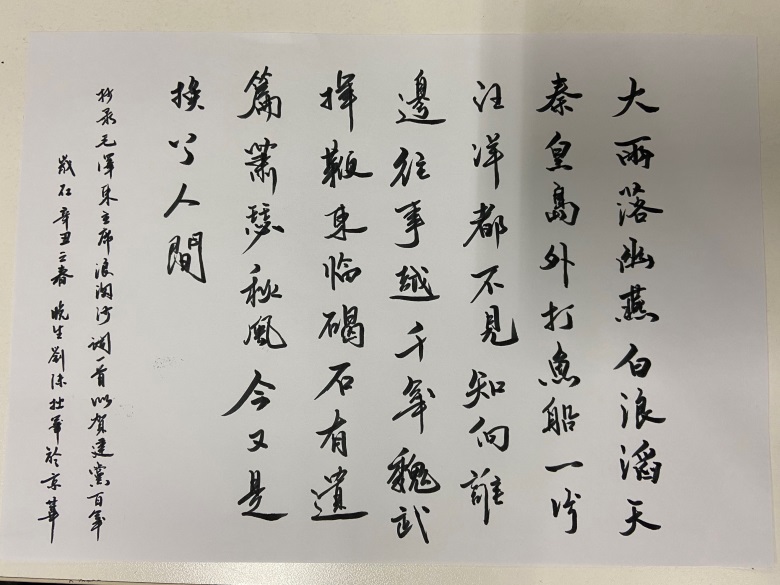 综合办公室刘沫同志抄录毛主席的《浪淘沙·北戴河》,笔法遒劲有力,行云流水,获得书法类优秀奖。
