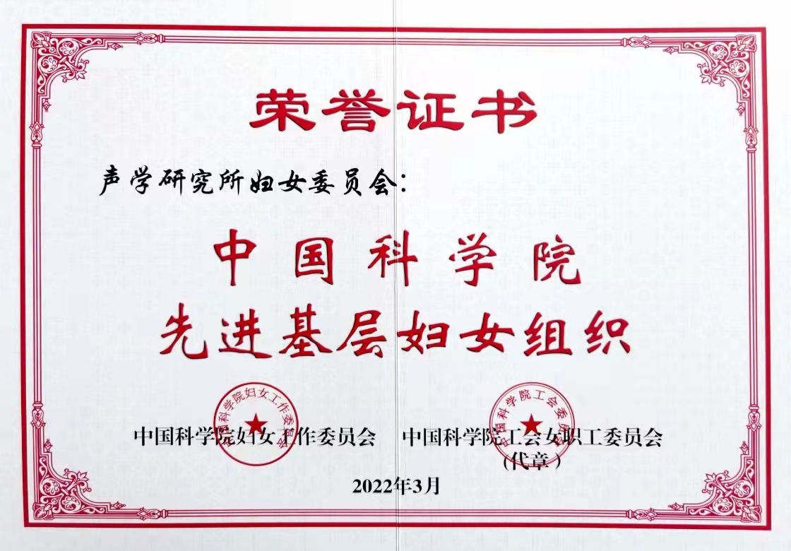 2022年3月7日,中国科学院妇女工作委员会、工会女工委员会召开心系“国家事”肩抗“国家责”先进事迹报告会暨表彰大会,赢乐welcome妇委会获中科院“先进基层妇女组织”荣誉称号。