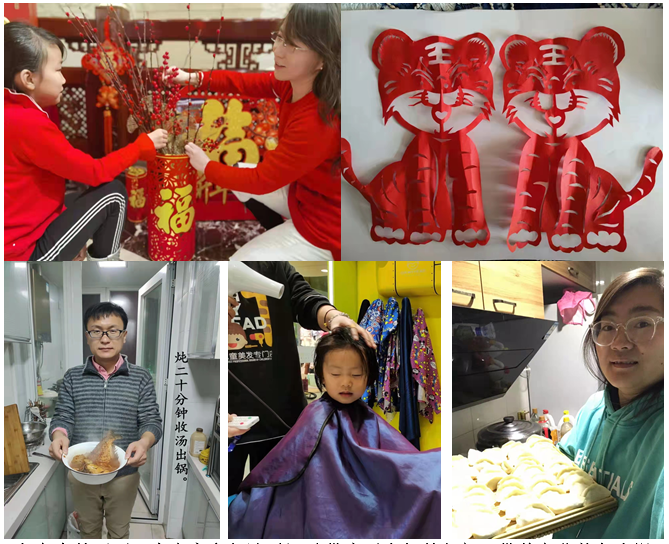 实验室全体职工热情高涨,以小视频或组图形式踊跃参与年味儿分享和助力冬奥活动。大家积极寻找身边的中华传统文化、春节习俗,和家人一起动手做一桌热腾腾的年夜饭,或包一盘皮薄馅儿大的饺子,做一条香气扑鼻的红烧鱼,亲自操刀剪窗花,踩着凳子贴春联,陪孩子插花、理发、写福字……在烟火气息中感受着浓浓的春节氛围。大家还自创春联和灯谜,将虎年的年味儿分享推向高潮。