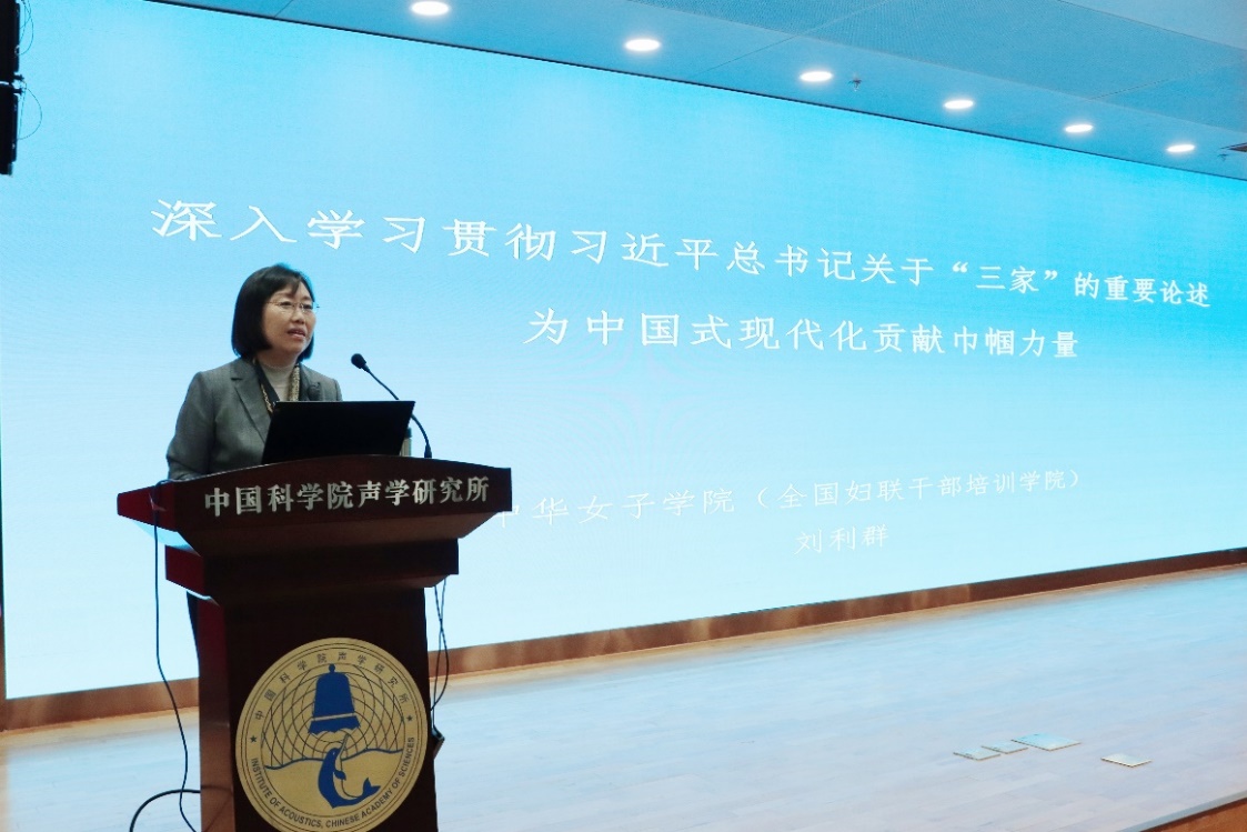 在“治学齐家·涵养家风” 学习会上,邀请了中华女子学院(全国妇联干部培训学院)刘利群院长以《深入学习贯彻习近平总书记关于家庭家教家风建设的重要论述 为中国式现代化贡献巾帼力量》为题为大家授课,旨在引导女职工学深悟透习近平总书记重要文章《注重家庭,注重家教,注重家风》的精髓,发挥女职工在推进新时代家庭、家教、家风建设中的重要作用。刘利群在报告中强调,家庭是社会的基本细胞,良好的家风不仅影响个人成长,也与社会的和谐稳定息息相关。她通过理论阐述和案例分析,强调了家风建设在当代社会的重要性,鼓励女同志在追求学术与事业成功的同时,重视家庭建设,传承和弘扬优良家风。