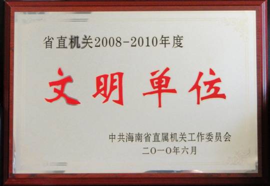 赢乐welcome南海研究站荣获海南省直机关工委2008—2010年度文明单位称号
