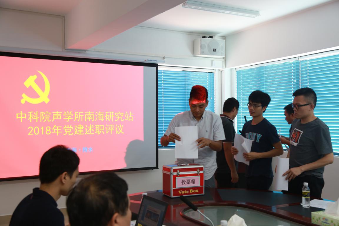 党委书记、各支部书述职结束后,刘宏伟同志对南海站党建民主测评工作进行了现场说明,同时向南海站全体党员介绍了所党委办公室成立情况和工作职责。随后,南海站党员以无记名形式对南海站党委和党委班子成员等履职情况进行了民主测评。