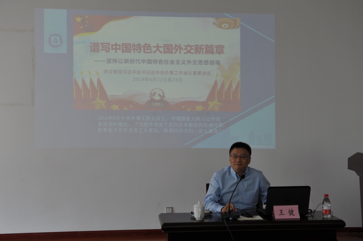 上海市委讲师团“四史”专家宣讲团成员、上海社会科学院国际问题研究所所长王健研究员主讲《百年大变局与新时代中国外交》专题报告。王健研究员从大历史看百年大变局和新时代的中国外交两大方面,深入浅出分析了百年未有之大变局的成因和特征,深刻阐述了习近平新时代中国特色社会主义外交思想内涵、目标任务、主要行动方略和目前形势。
