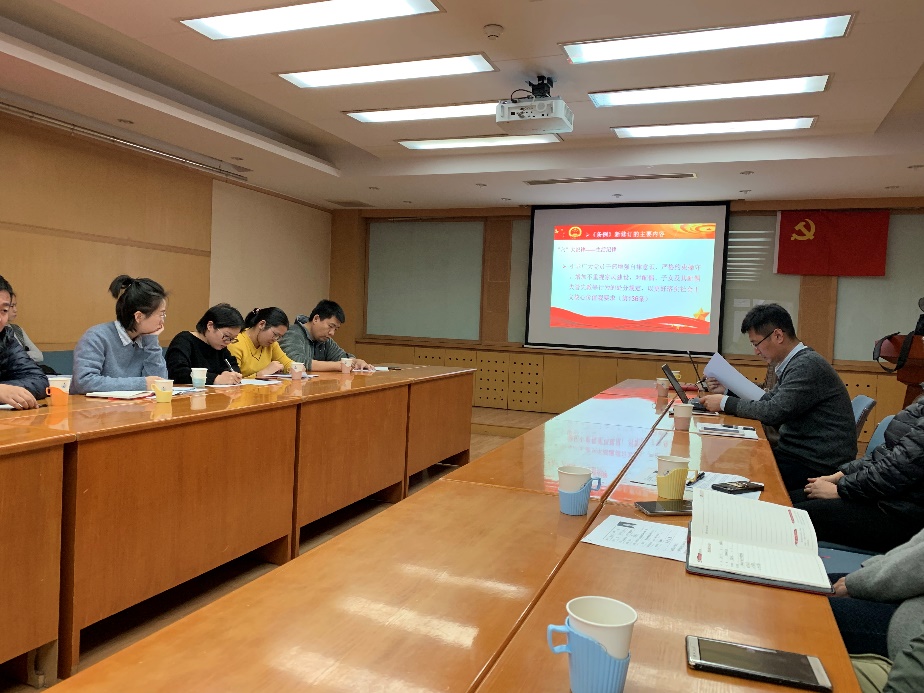 彭朝晖首先带领与会同志学习了2018年新修订的《中国共产党纪律处分条例》。彭朝晖强调,《中国共产党纪律处分条例》是根据《中国共产党章程》制定的党内法规,旨在维护党的章程和其他党内法规,严肃党的纪律,纯洁党的组织,保障党员民主权利,教育党员遵纪守法,维护党的团结统一,保证党的路线、方针、政策、决议和国家法律法规的贯彻执行,并督促大家自主进行学习。