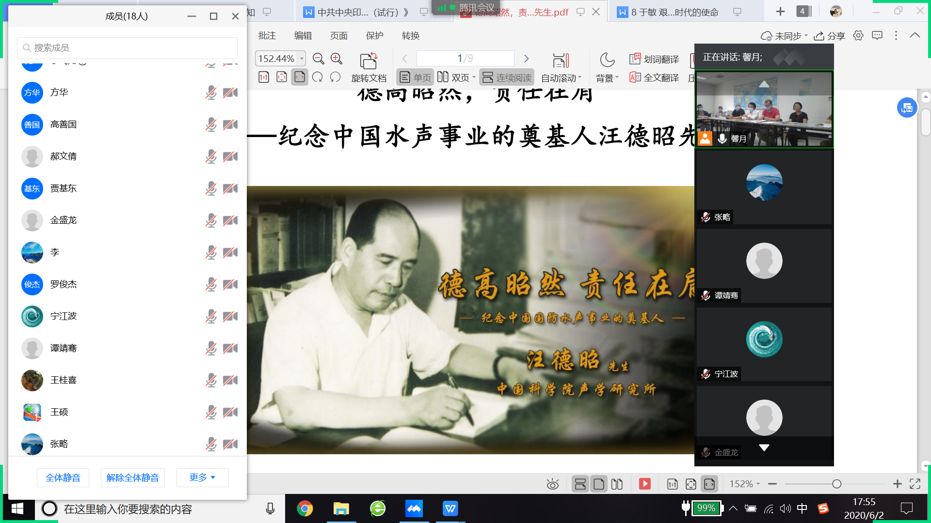 2020年6月2日,水声工程中心党支部采用线上线下相结合的形式,开展了“诵读科学经典,弘扬科学家精神”主题党日活动。线上线下40余名党员参加了活动。