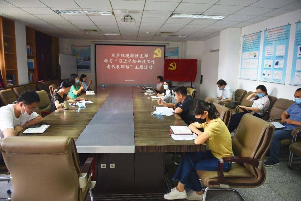 2020年6月9日,水声环境特性党支部在德昭北楼416会议室开展学习习近平总书记给科技工作者代表回信的活动,支部书记曾娟主持。